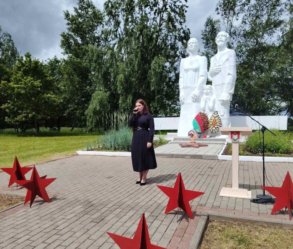 – Мы, прадстаўнікі маладога пакалення, знаходзячыся на гэтай трагічнай зямлі, усведамляем маштабы трагедыі ваенных дзён. Мы павінны жыць за дзяцей, якія загінулі, і ніколі не забываць жаху, праз які ім давялося прайсці. Абяцаем насіць у сабе боль гэтай зямлі як самы дарагі ўрок. Не забываць імёны герояў і расказваць пра іх сваім дзецям. Берагчы мір, які нам падарылі. Толькі ад нас залежыць, якой будзе Беларусь. Сёння абяцаем зрабіць усё магчымае, каб вайна ніколі не вярнулася нашу зямлю. Няхай памяць будзе мацней за смерць, а мір больш трывалы чым вайна.