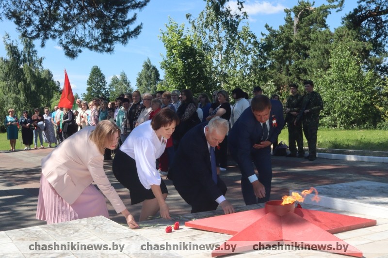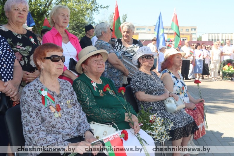 — Выступая 1 июля на торжественном собрании, наш Президент Александр Лукашенко отметил: «Мы празднуем День Независимости под чистым небом и очень этим дорожим. Мы делаем все, чтобы миром оплатить долг перед поколением победителей, подарившим нам 80 лет этой мирной жизни. Делаем все, чтобы оправдать их надежды. В противном случае за что они погибали? Беларусь под чистым небом — это и цель всей нашей политики, и образ будущего, к которому стремимся», — акцентировал внимание Александр Петрович. — Жители Чашникского района, как и все белорусы, гордятся своей историей, своими традициями и культурой. Мы помним, какой ценой досталась нам независимость и с благодарностью склоняем головы перед подвигом наших дедов и прадедов.
