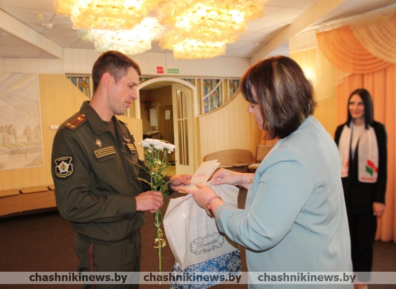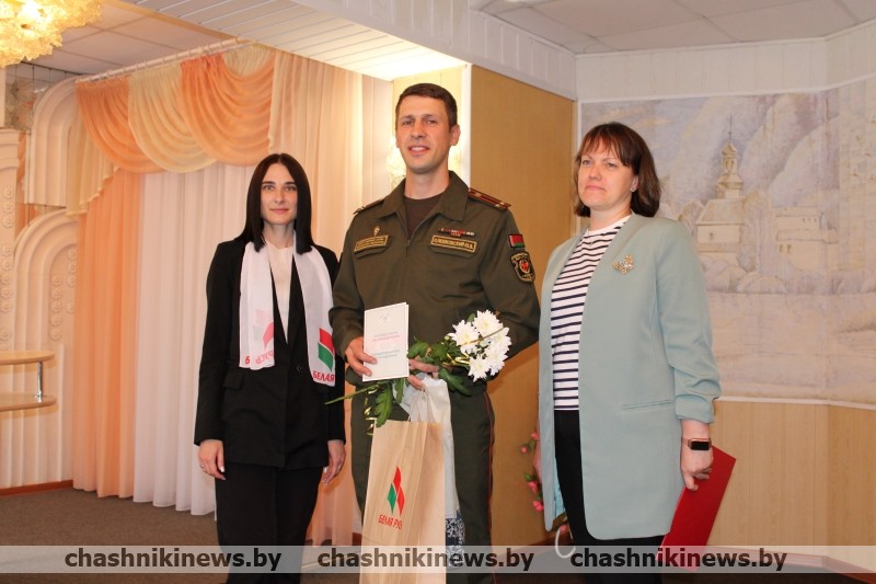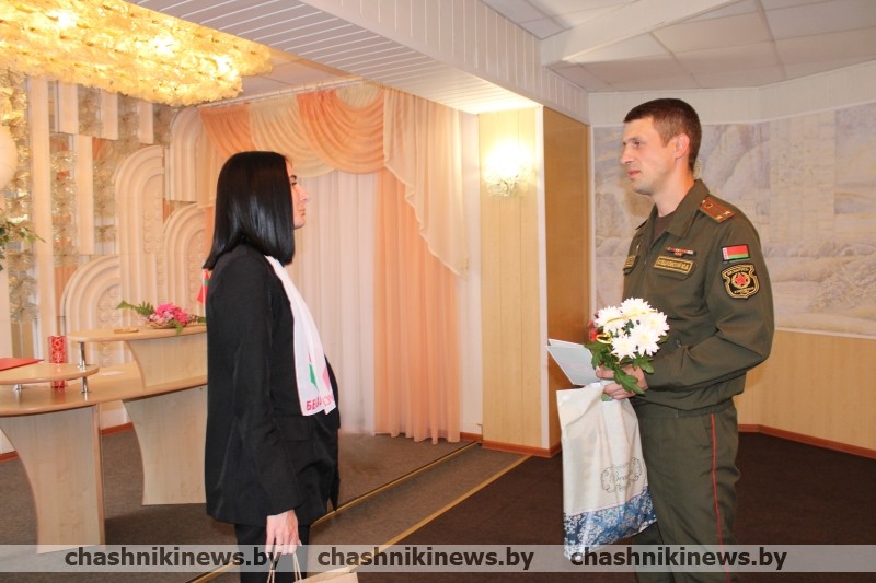 В семье Юрия Викторовича и Анастасии Владимировны Олешковских радостное событие – появился на свет пятый ребенок. В торжественной обстановке родителей поздравили, а также вручили свидетельство о рождении в отделе ЗАГСа Чашникского райисполкома.
