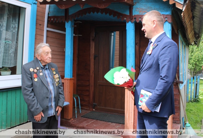 Поздравить ветеранов пришли председатель Чашникского райисполкома Александр Быков, начальник управления по труду, занятости и социальной защите населения Юлия Стигнеева, начальник отдела идеологической работы и по делам молодежи Чашникского райисполкома Алла Баранова, председатель Чашникской районной организации Белорусского общественного объединения ветеранов Валентина Коваленко, а также активисты БРПО.