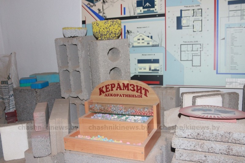 Сегодня в ассортименте предприятия – более десятка различных по типоразмерам, техническим характеристикам и, соответственно, областям применения керамзитобетонных блоков и керамзита, тротуарная плитка и бортовые бетонные камни. В фойе завода гости смогли ознакомиться с выпускаемой продукцией.