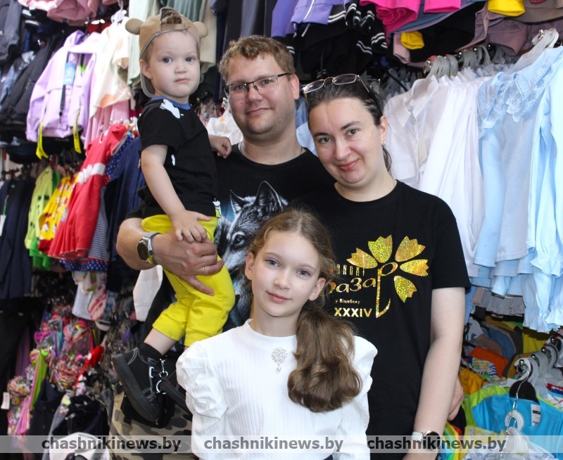 – Наша дочь Анастасия в этом году пойдет в третий класс. К школе готовимся постепенно. По опыту могу сказать, что спешить не стоит. Часть покупок сделали в Полоцке, куда ездили по делам. Сейчас проводим много времени на даче недалеко от Чашник, поэтому приехали сюда. Здесь есть выбор деловой одежды, главное, чтобы дочери нравилось и подходило по размеру.