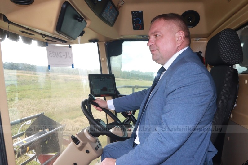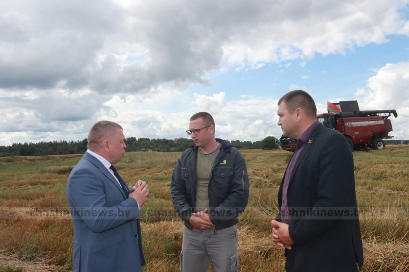 ВАЖНО СОБРАТЬ УРОЖАЙ. Далее служебный автомобиль главы района отправился туда, где ведется уборка зерновых. Экипажи ОАО «Проземле-Агро» работали вблизи деревни Круглица. Здесь Дмитрий Станкевич пообщался с комбайнерами, поинтересовался их настроением, узнал, довольны ли зарплатой, условиями труда, есть ли вопросы или проблемы.