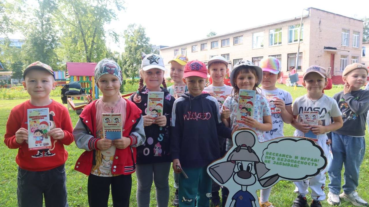 В конце мероприятия дошкольникам были вручены раскраски, и яркая наглядно-изобразительная продукция «Безопасное детство».