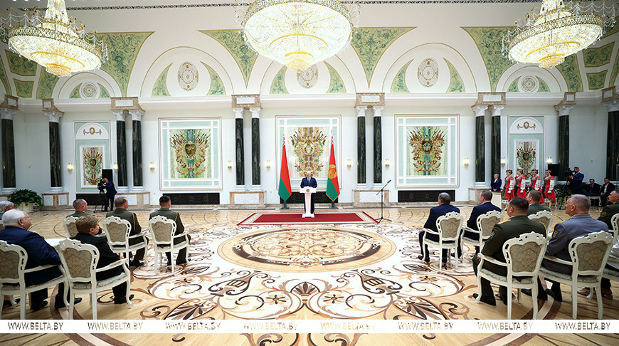 Александр Лукашенко отметил, что эстафета поколений символично продолжается, когда в торжественной обстановке получают заслуженные государственные награды работники промышленности, строители, труженики села, военные, правоохранители, деятели культуры, спортсмены – все труженики, которые каждый день созидают жизнь в стране. Таким образом укрепляется связь времен и единство людей.