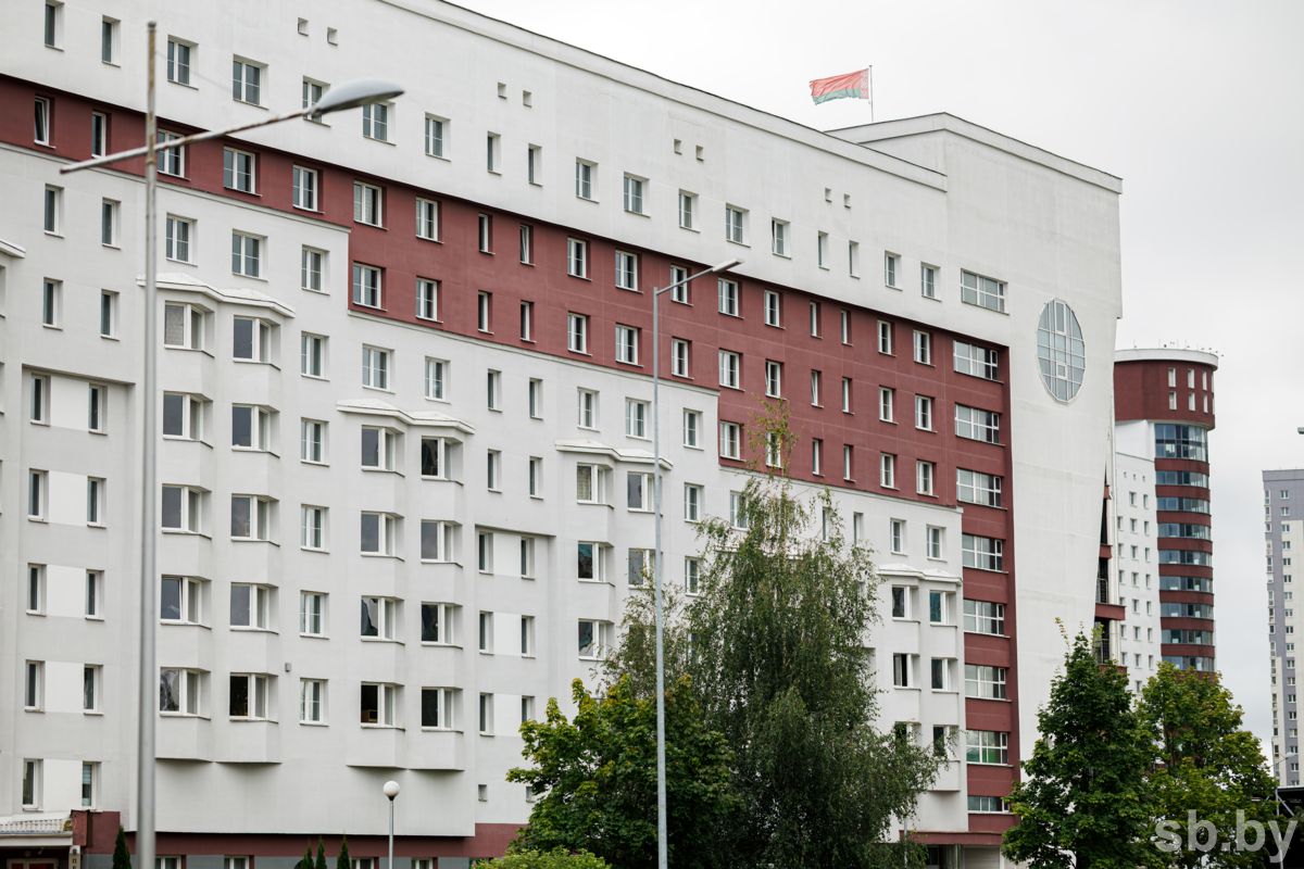 26-08-2025 Фото Кирилла Стасько. Минск, Общежитие № 11 Белорусского государственного университета. Заселение студентов в общежитие. БГУ, образование, здание, флаг Беларусь