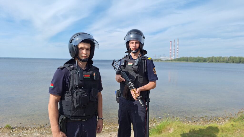 Наряд группы задержания Чашникского отдела охраны в составе милиционера-водителя Романа Бородича и милиционера Сергея Вайтёнка несет службу по охране периметра станции, осуществляет контроль за прилегающей территорией и сторожевыми постами.