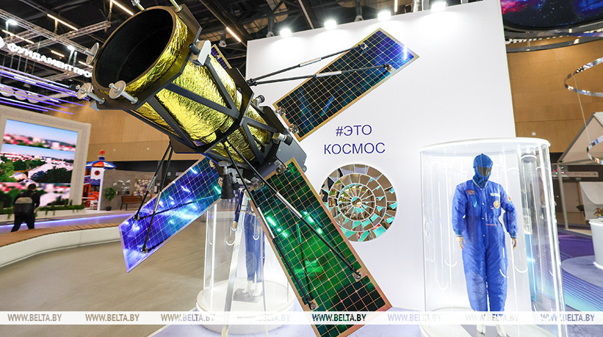 Стенд предприятия посвящен космической тематике. “В центре – макет перспективного российско-белорусского космического аппарата, запуск которого запланирован на 2028 год. Конструирование ведется в кооперации Россия – Беларусь: съемочная аппаратура камеры произведена белорусским предприятием “Пеленг”, платформу создают российские предприятия. УП “Геоинформационные системы” будут его оператором”, – рассказала Александра Смагина.