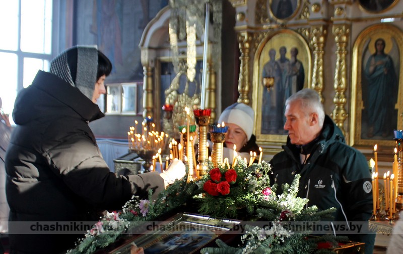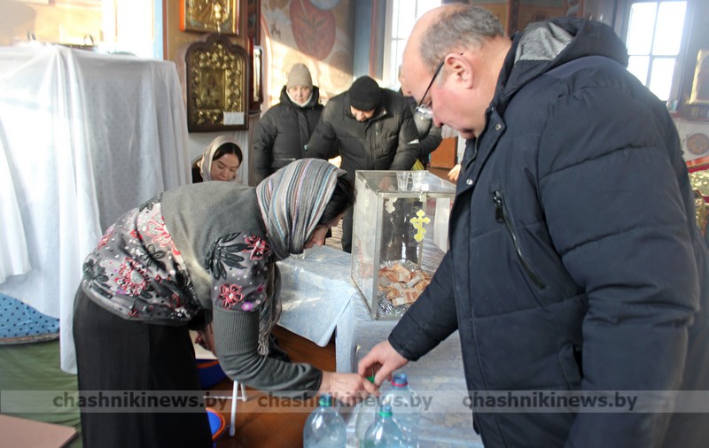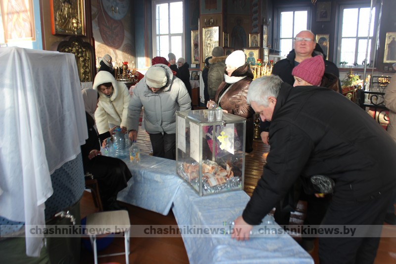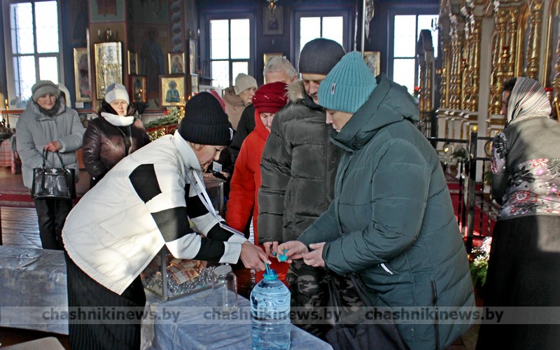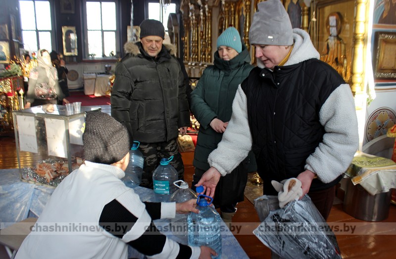 Фотофакт. Православные верующие приходят за освященной водой в храм Преображения Господня г. Чашники