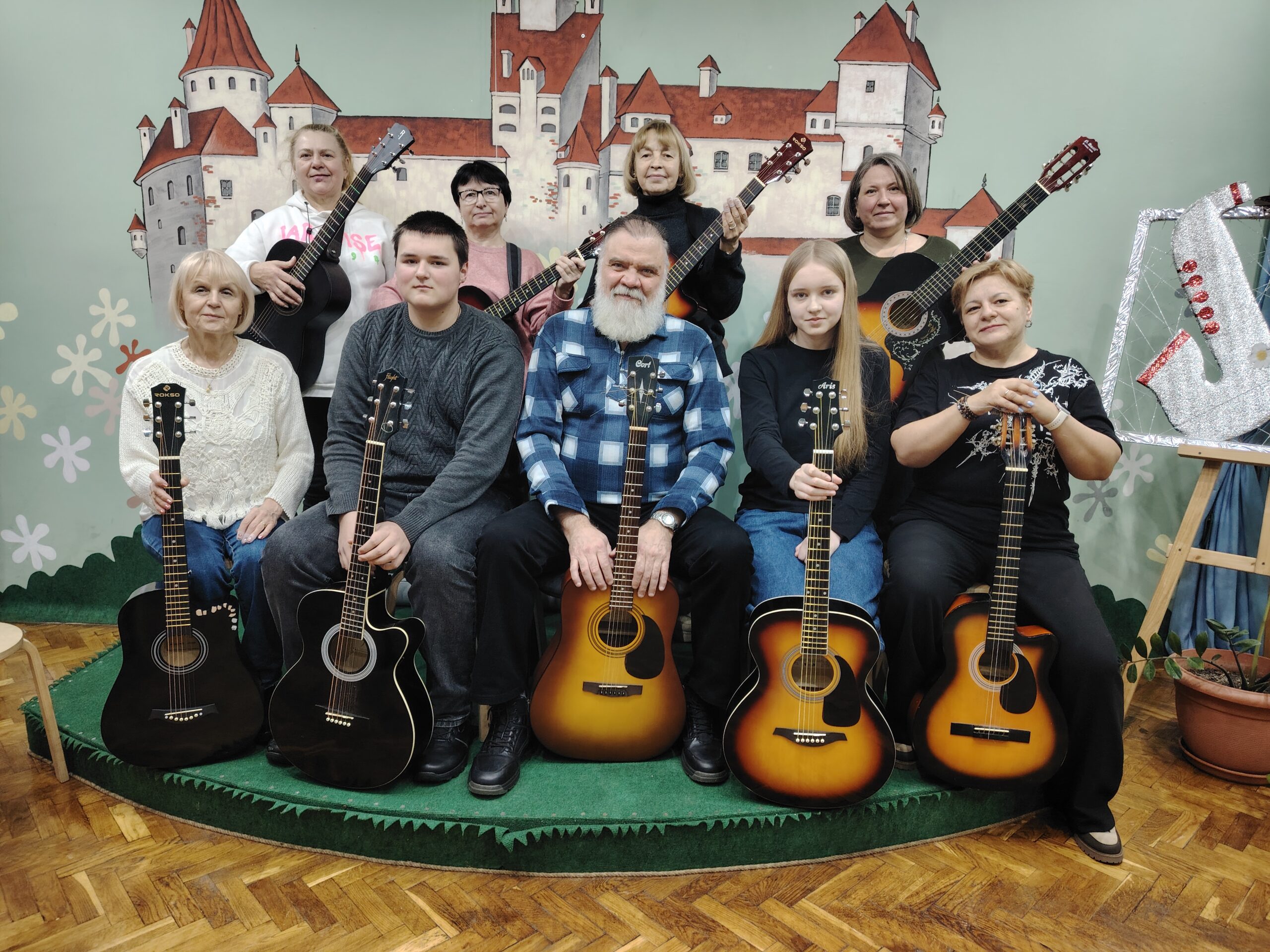 В Новолукомльском Дворце культуры с недавнего времени проводятся занятия по основам игры на гитаре. Данная услуга осуществляется на бесплатной основе в рамках клуба выходного дня« Домовенок». Осваивают инструмент как школьники, так и люди серебряного возраста.