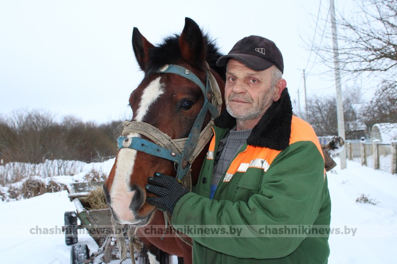Сейчас уже в сельских населенных пунктах нечасто встретишь людей, у которых до сих пор в подсобном хозяйстве есть лошади. В Иванске, например, осталось всего трое хозяев. Один из таких – Сергей Козлов. Его любовь к этим грациозным животным появилась еще в детстве, а точнее – передалась по наследству. Семьей они часто ездили на каникулы в Кричевский район (Могилевская область) к бабушке и дедушке по маминой линии. Дед Иван работал конюхом и постоянно брал с собой внука. В конюшне Сергей наблюдал, как ухаживают за скакунами, чем кормят и как правильно их запрягают в воз. Потихоньку освоил все тонкости, поэтому его любовь и тяга к лошадям – заслуга деда. Хотя вспоминает, что в их семье первая лошадь, кобыла по кличке Машка, появилась, когда Сергей уже заканчивал школу. Ее купил отец. Для сельчан она тогда была первым помощником: обрабатывала немалые земельные площади и кормила большое хозяйство. Вместе с родителями всегда работали и дети, поэтому и к труду приучены. Вот и мой собеседник, когда у него появилась собственная семья и дом в родном Иванске, не раздумывал, а обзавелся личным хозяйством и в помощники забрал себе жеребенка от Машки. Потихоньку обучил его. Говорит, что это очень важно, ведь от того, как правильно обучишь лошадь, зависит ее поведение в дальнейшем и непосредственно работа в поле. К сожалению, по болезни жеребец прожил недолго. Но Сергей, настолько прикипевший к этим животным, уже не представлял свое хозяйство без лошади. Вместе с другом отправился в деревню Коптевичи и там приобрел нового коня. Вот уже 15 лет в хозяйстве семьи Козловых есть конь по кличке Казбек, и любят его ничуть не меньше прежнего. И это видно: пока мы с Сергеем разговариваем, он постоянно его гладит и ласково треплет гриву. – Посмотрите, какой красавец! – с гордостью говорит сельчанин. – Конь с характером. Кажется, будто он все понимает, как человек. Поговорю с ним, и на душе сразу становится легче. Хозяин за долгое время досконально изучил все повадки и нрав своего четвероногого помощника. Именно поэтому он справляется с ним в основном самостоятельно. Если людям нужно помочь, он не рискует доверять своего коня чужим рукам, предпочитая все делать сам. Конечно, есть у мужчины в помощниках и современный «железный» конь – мотоблок. Владелец признается, что работы у Казбека хоть и поубавилось, но простаивать в сарае долго не приходится: