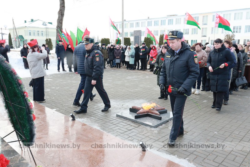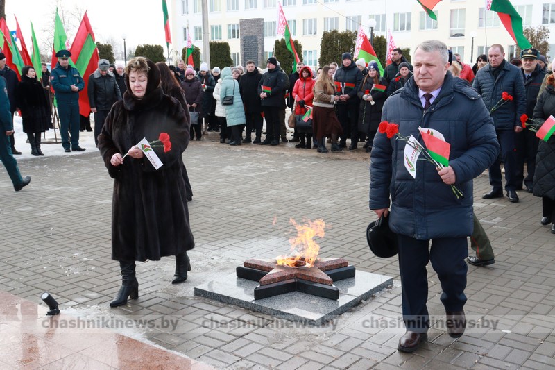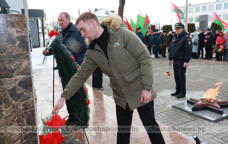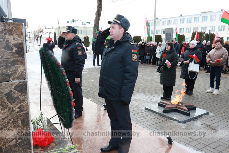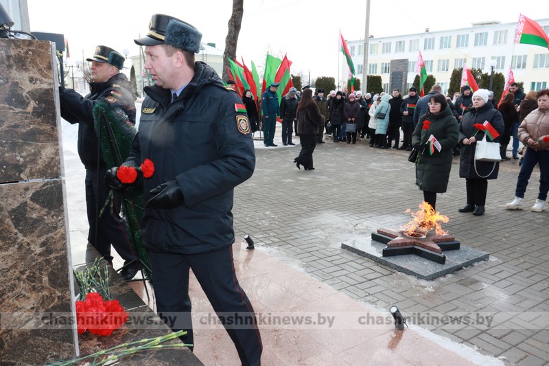 По случаю празднования Дня защитников Отечества и Вооруженных Сил Республики Беларусь в райцентре состоялся митинг, который прошел на братской могиле.