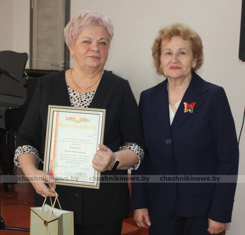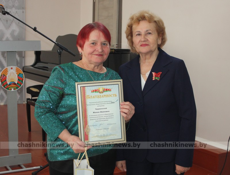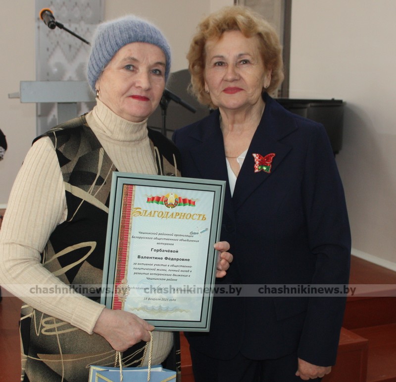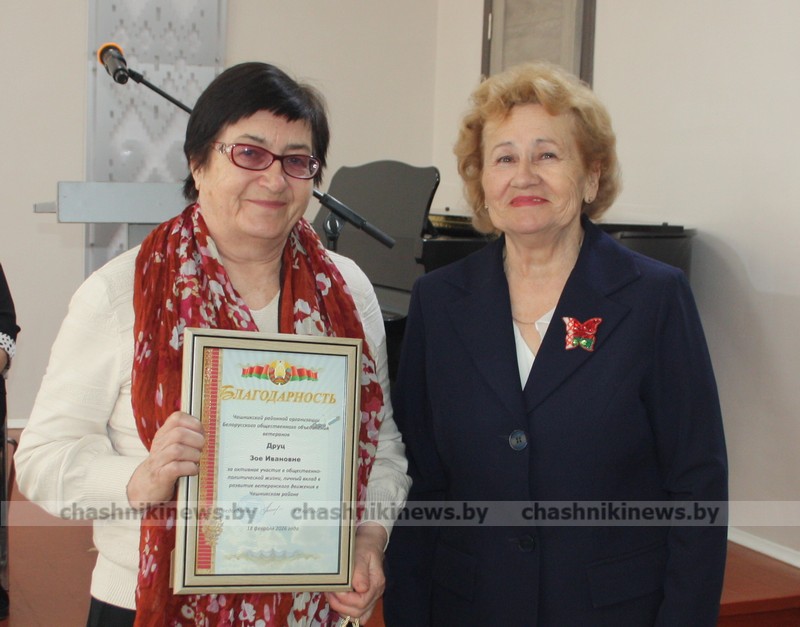 Возглавить Чашникскую районную организацию Белорусского общественного объединения ветеранов единогласно снова доверено Валентине Коваленко. Подарок и поздравление вновь избранному лидеру вручила председатель Чашникского районного отделения Белорусской партии «Белая Русь» Людмила Головешко.