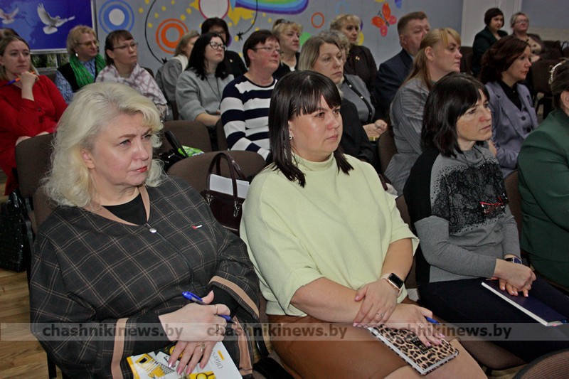 Среди почетных гостей мероприятия присутствовала заместитель председателя Чашникского райисполкома Галина Авижа. Зал заполнили руководители и специалисты отдела по образованию, включая директоров учреждений образования, председателей первичных профсоюзных организаций и сотрудников районного учебно-методического кабинета.