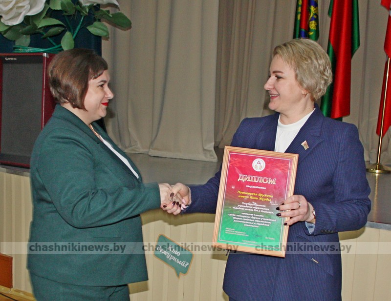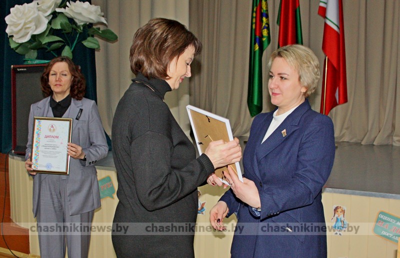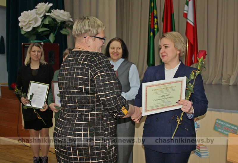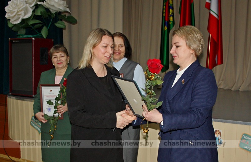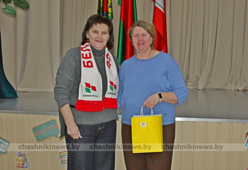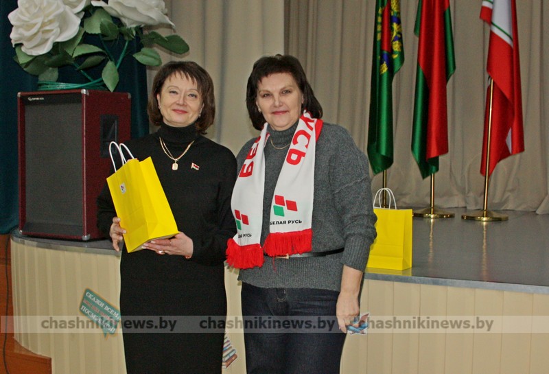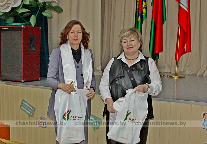 Ведущий специалист районного общественного объединения «Белая Русь» Ирина Соловьёва подарками отметила Инну Бурчик, директора Средней школы №1 г. Чашники имени Героя Советского Союза Е. Ф. Ивановского, и Наталью Винникову, заведующего Детским садом №3 г. Новолукомля.