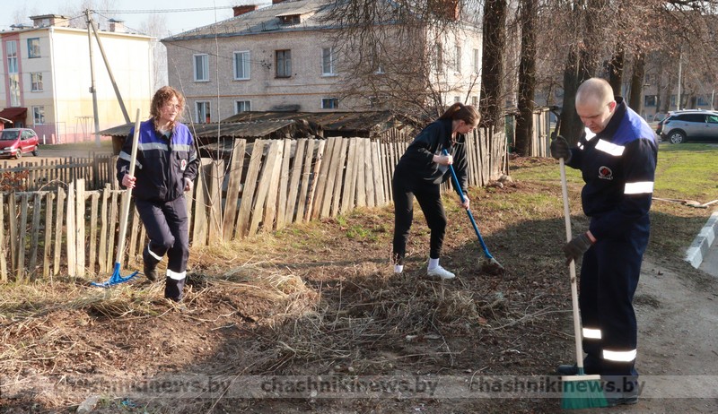 Глядя на деятельность коммунальной службы, подключились и остальные. Здорово потрудились на благоустройстве прилегающих территорий представители ПУ «Чашникигаз», районного центра культуры и народного творчества, библиотечной системы, спортучреждений, учреждений образования, здравоохранения и прочие. Сотрудники центральной районной аптеки навели порядок на прилегающей дворовой территории.