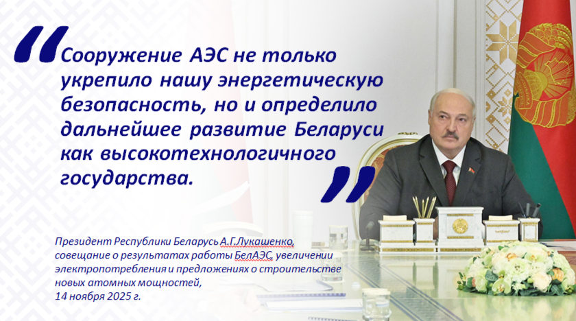 Запуск первой белорусской атомной электростанции дал старт новому этапу развития страны. Как отметил Глава государства А.Г.Лукашенко 14 ноября 2025 г.: «Сооружение АЭС не только укрепило нашу энергетическую безопасность, но и определило дальнейшее развитие Беларуси как высокотехнологичного государства».