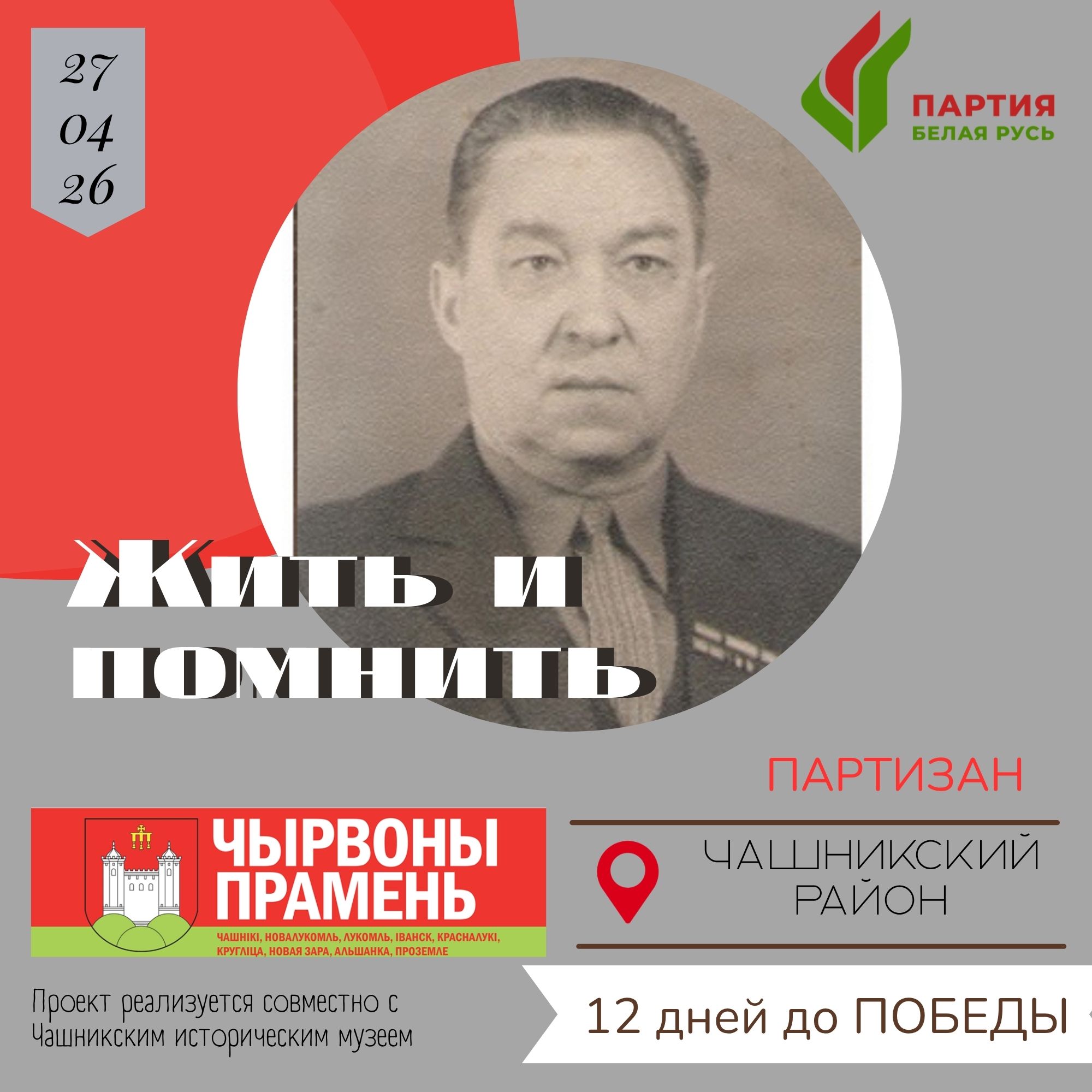 День Победы встрети в госпитале. Как загноились раны, был демобилизован в Старых Лавках. После войны никого из родных не осталось. Отец умер. Мать переехала к сестре. Подался и я к ним. Потянуло потом обратно на Чашниччину.
