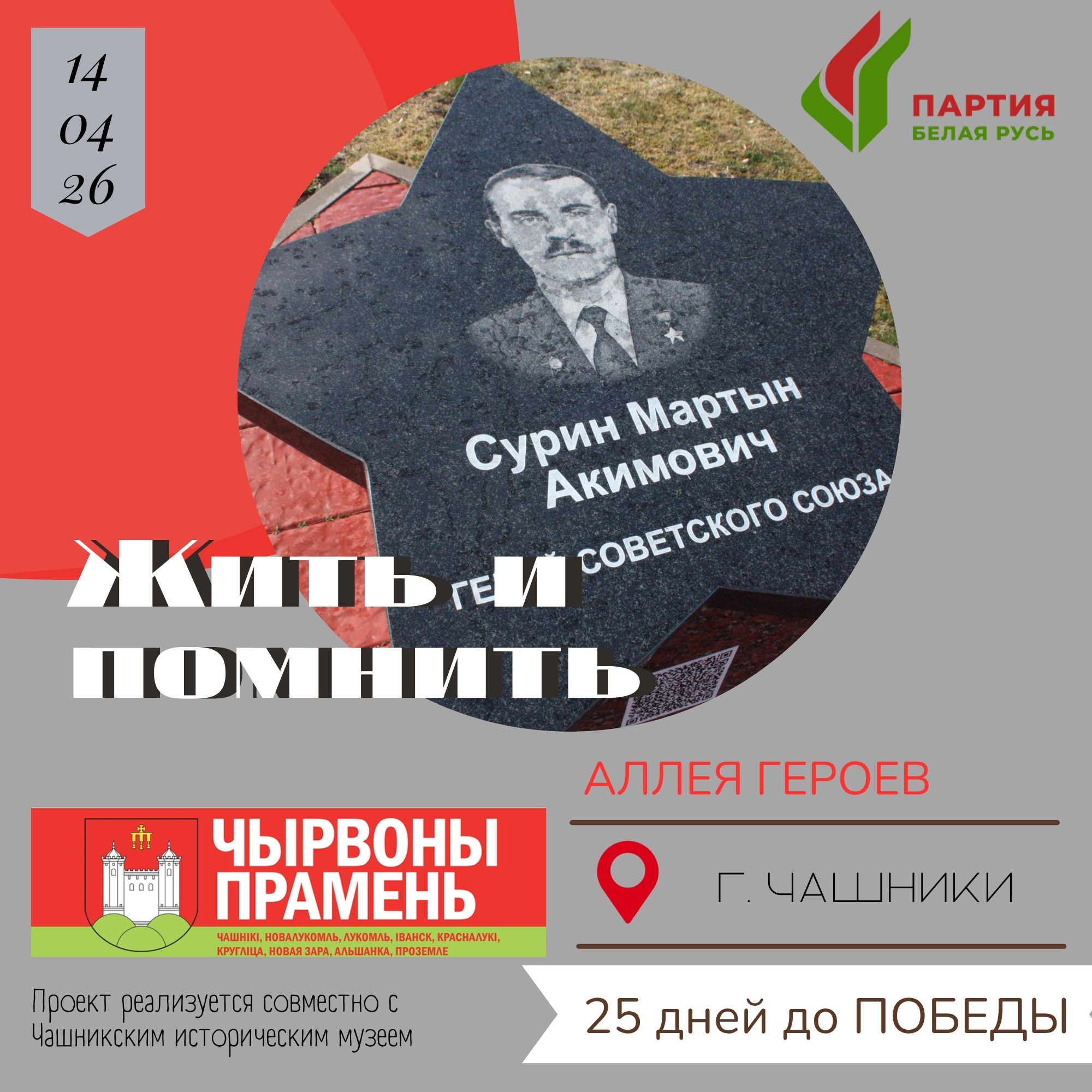 Скончался 24 апреля 1963 года. Похоронен в деревне (ныне агрогородок) Нача Крупского района. Именем Героя названа улица в деревне Нача. Имя нашего земляка присвоено Кащинской средней школе Чашникского района Витебской области. В Чашниках память о М.А.Сурине увековечена на Аллее Героев. В музее Начской средней школы собраны материалы о его жизни и подвиге.