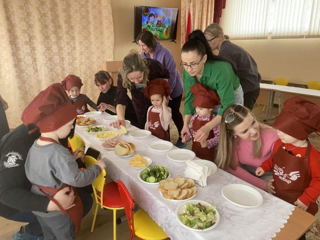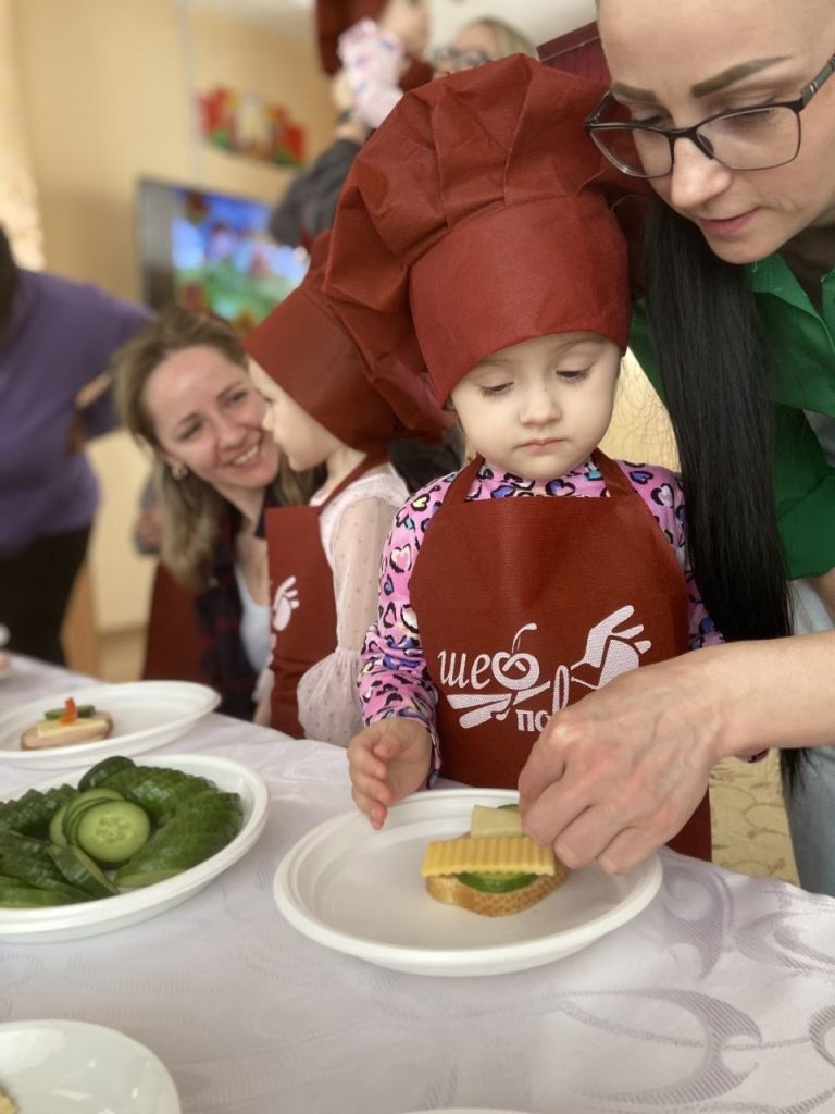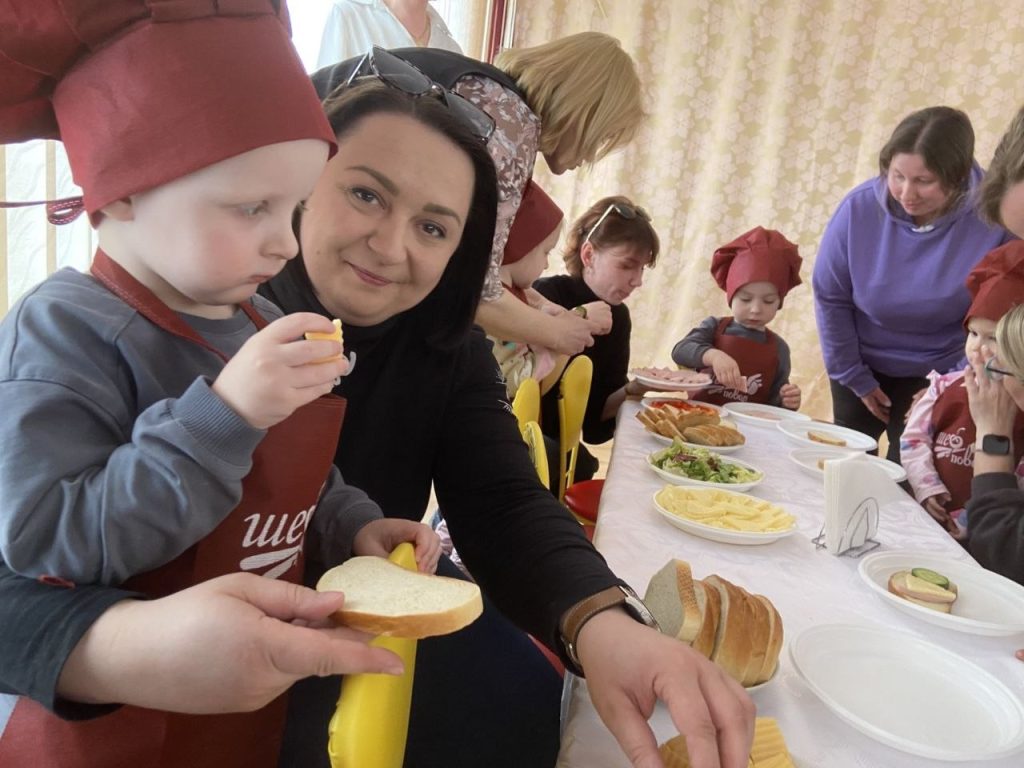 Малыши первой младшей группы порадовали мам танцем «Варись, кашка», а затем вместе с мамами приготовили необычные и полезные бутерброды.